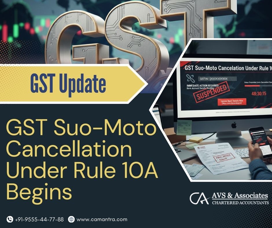 The GST Network (GSTN) has officially began issuing suo-moto cancellation notices under Rule 10A, leading to widespread concern among businesses. These notices are being sent to taxpayers who have failed to update their bank account details within the prescribed timelines after GST registration. As a result, many GSTINs are already facing suspension, and continued non-compliance may soon lead to automatic cancellation.